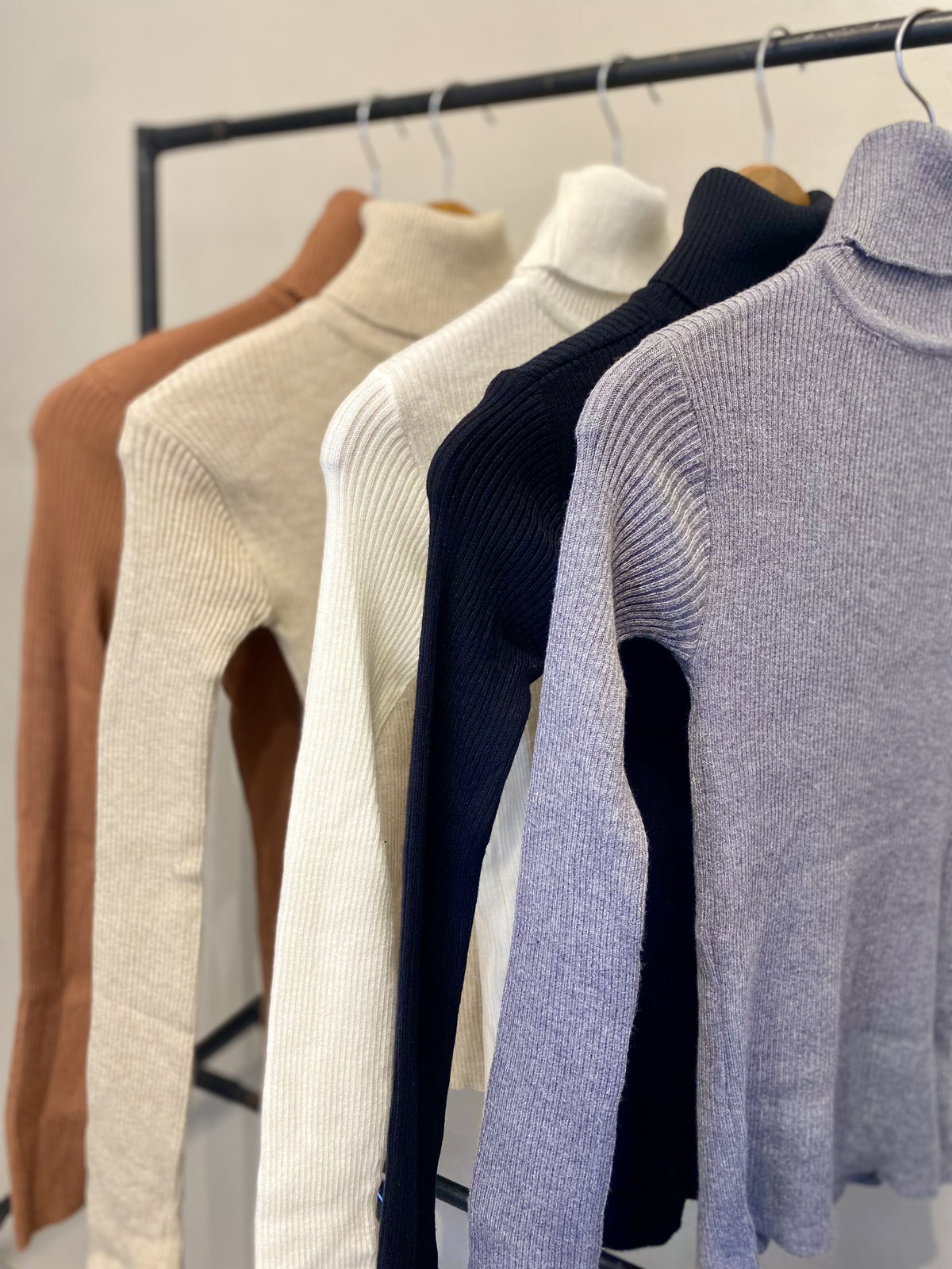 Polera clara de hilo suave elastizada y abrigada.